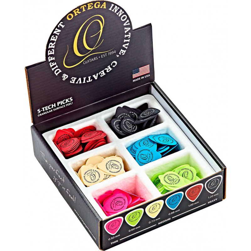 PACK DE PÚAS Expositor de mostrador DISPLAY BOX de 216 puas variadas con 6 colores y grosores diferentes (0,50 / 0,60 / 0,73 / 0,88 / 1,00 / 1,20 mm)
