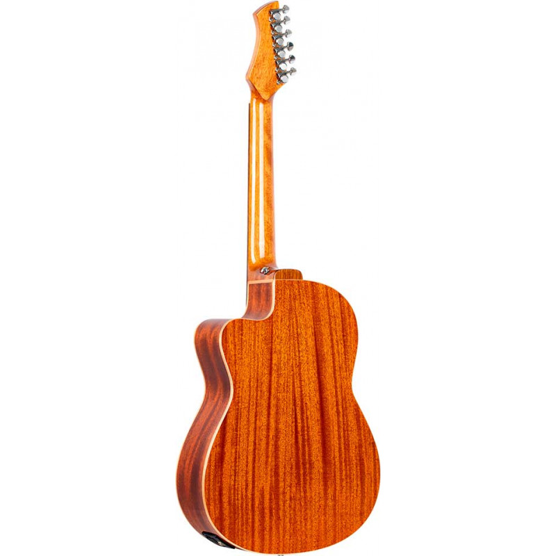 GUITARRA CLÁSICA CON PREVIO RCE238SN-FT Guitarra electro clásica con cutaway y pala con clavijero 6 en linea. Tapa maciza de abeto de Alaska en acabado faded brillante. Aros y fondo de caoba con acabado brillante. Mastil de caoba estrecho con alma de doble sentido y acabado brillante. Puente de madera de laurel de Indias con 12 agujeros. Rosetón de boca d enogal, arce y perlado blanco. Electronica Magus Pro con afinador. Cuerdas Savarez 500CJ. Funda deluxe incluida.