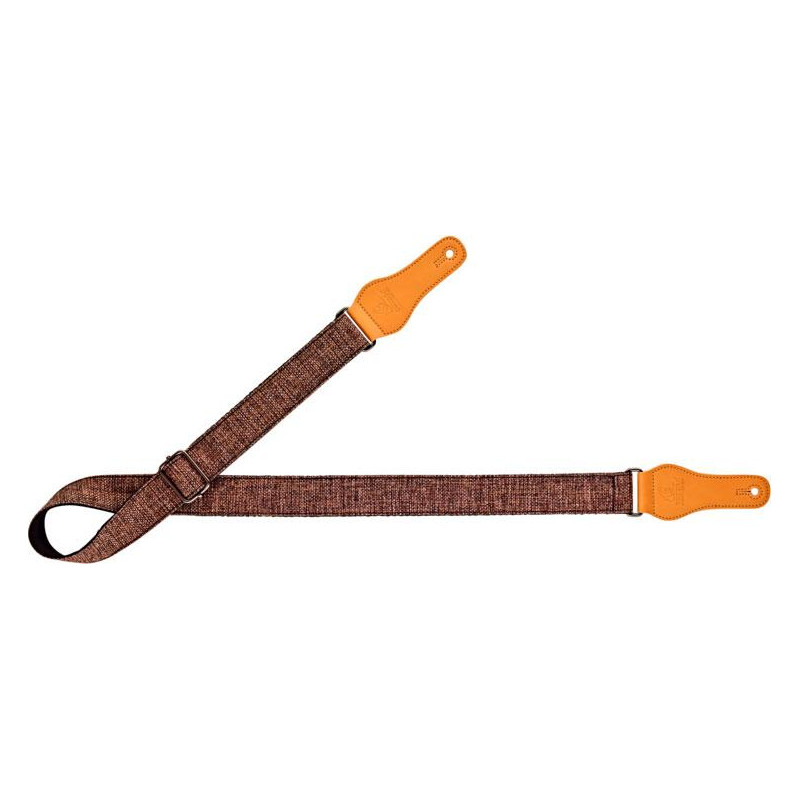 CORREA DE GUITARRA / BAJO Correa de algodón para ukelele de la serie``Casual´´. Color CARBON. Extremos en poli piel flexible color camel con troquel que se ajusta a cualquier enganche de ukelele. Medidas: 37mm de anchura y 1390mm de longitud máxima.