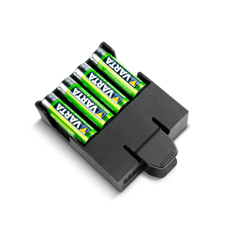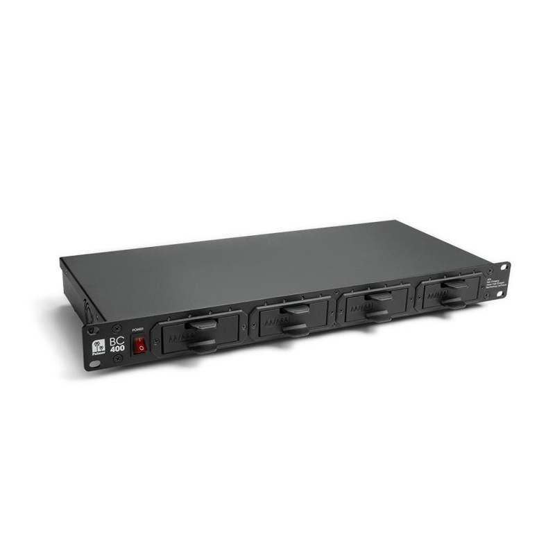 Párrafo El cargador rápido de 19" de Palmer monitorea el nivel de carga de cada batería individual, detecta baterías defectuosas y protege contra sobrecargas y cortocircuitos. El Palmer BC 400 AAA V1 está equipado con 16 pilas Varta AAA.