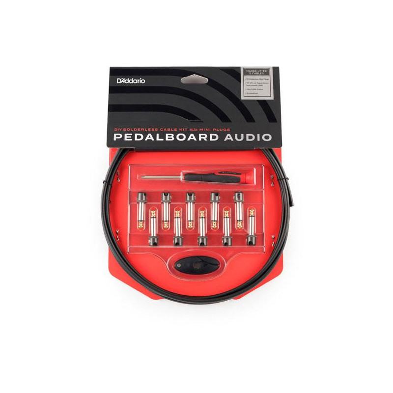 CABLE DE PATCH JACK KIT PARA EL MONTAJE CON CONECTORES MINI SIN SOLDADURAS DE CABLES PARA PEDALES DE GUITARRA. INCLUYE 3 METROS DE CABLE CON DOBLE AISLAMIENTO, 10 CONECTORES JACK RECTO O ACODADO, Y HERRAMIENTA DE CORTE PARA EL CABLE.