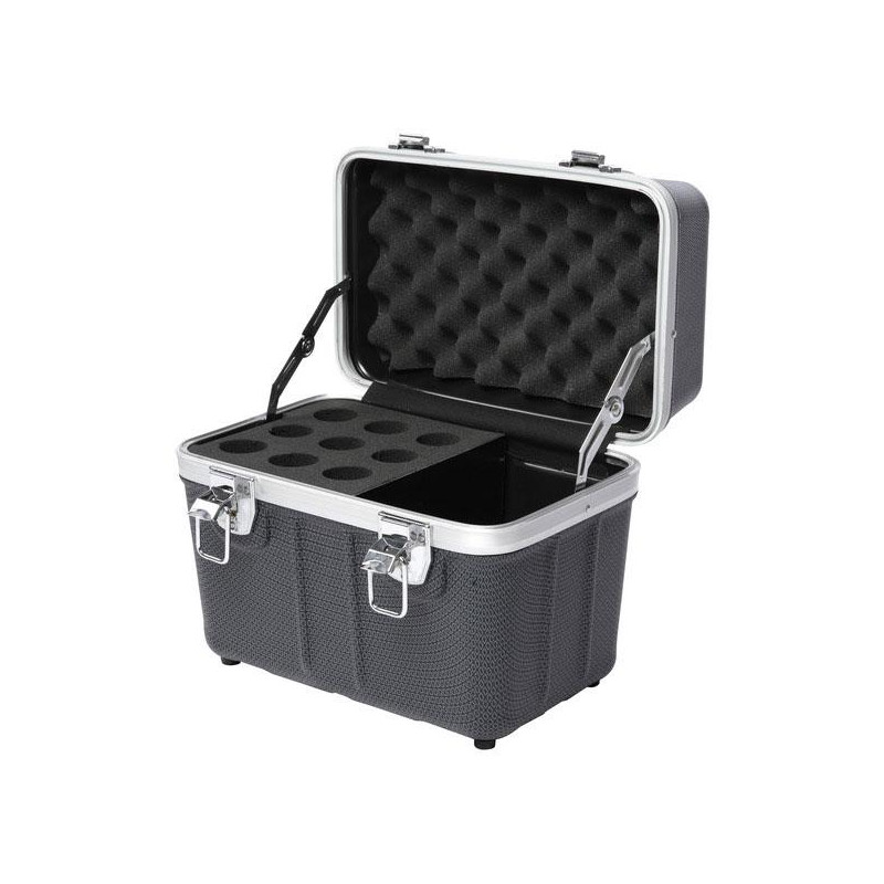 ESTUCHE PARA MICROFONO/S Maleta Proel FOABSMIC9. Estuche para 9 micrófonoshecho de 'Polietileno FORCE' con inserto de espuma moldeada para la inserción de los micrófonos y un práctico compartimiento lateral para cables y accesorios.