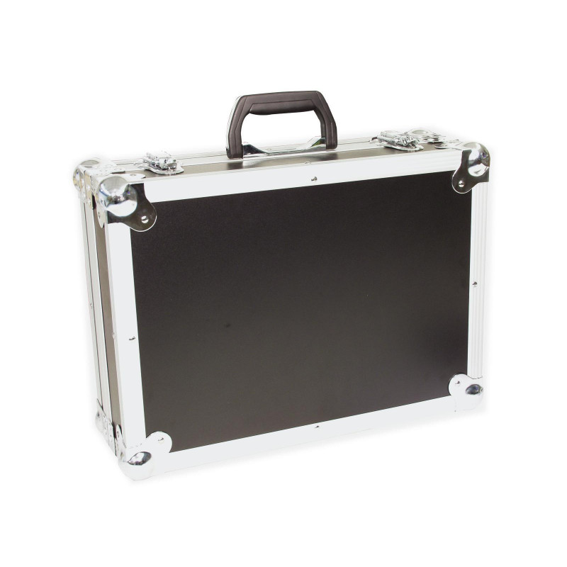 Flightcase con interior acolchado y flexibleROADINGER Universal Case se adapta a cualquier forma de dispositivo debido a su inserto de espuma flexible integrado. El marco de perfil de aluminio con esquinas redondeadas le da a ROADINGER Case la estabilidad necesaria. La robusta manija tecno y las dos cerraduras a presión con cerradura aseguran que su equipo siempre esté almacenado de forma segura. La carga máxima es de 25 kg.