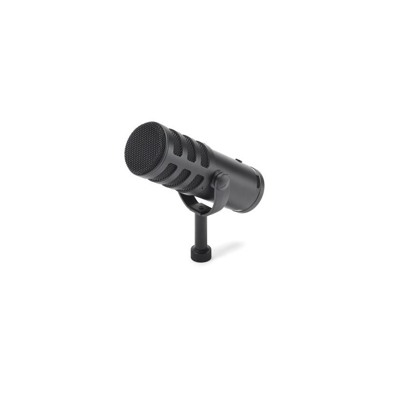 MICRÓFONO DINÁMICO DE MANO Microfono dinámico con bobina humbucking y iman de neodimio, con patron polar cardioide. Conectores de salida XLR (Analógico) y USB-C (Digital, con resolución de 24bit/96kHz) y conector de salida minijack 1/8' para auriculares, con latencia 0. Construcción robusta con adaptador giratorio de montaje. Selectores de: Low Cur Filter, Mid-presence Boost y Mute. Pantalla paraviento dual. Plug-and-play (no necesita drivers de instalación). Incluye cable de USB y pieza de montaje.