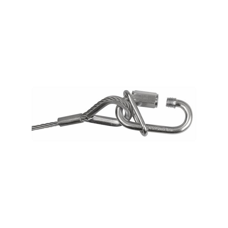 3 mm, 0,6 m, certificado Longitud: 60 cm Certificado: BGV-C1 Diámetro: 3 mm Incluye: Tomas de seguridad Marcado: DIN56926/140 Accesorios: Eslabón fijo Acabado: galvanizado Trenzado simple: máx. 5 kg Trenzado doble: máx. 10 kg