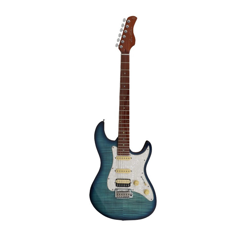 GUITARRA ELÉCTRICA ST 'Guitarra eléctrica Larry Carlton tipo Strat. Cuerpo de aliso con lámina de arce flameado. Mástil de arce tostado C-shape, acabado satinado. Diapasón de arce tostado, con trastes redondeados para mayor comodidad. Escala: 648mm (25.5’’). Mástil atornillado (bolt-on). Radio del diapasón: 241 mm (9,5''). 22 trastes Medium Jumbo. Cejilla de hueso, anchura 42mm. Pastillas: Sire Super-ST Pickup Set, 1x Humbucker (puente) y 2x bobina simple (central y mástil). Controles de Volumen y Tono (push-pull). Selector de 5 posiciones. Clavijeros con bloqueo Sire Premium Locking. Puente: Modern Tremolo Bridge (2 Post Type). Herrajes cromados. '