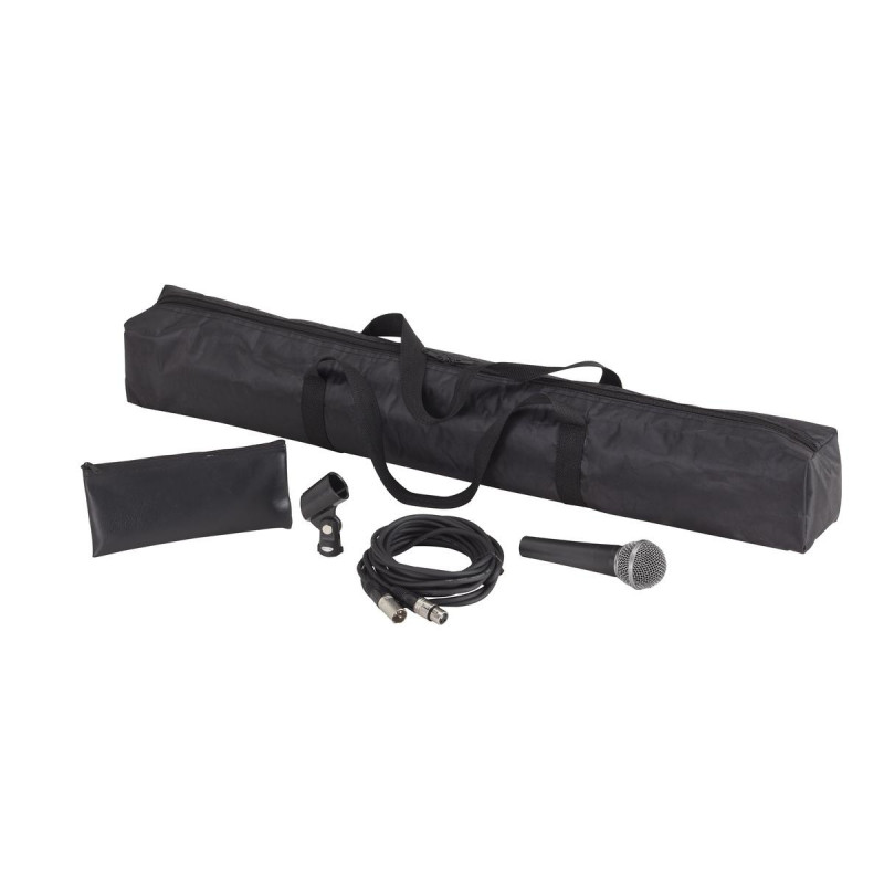El paquete de micrófonos Soundsation es un kit completo para vocalistas que incluye un micrófono dinámico de cuerpo metálico, un cable XLR de 6 mt y un soporte de micrófono para micrófono. Una bolsa de transporte acolchada, ofrece una solución fácil de usar para músicos en la carretera o en empresas de alquiler