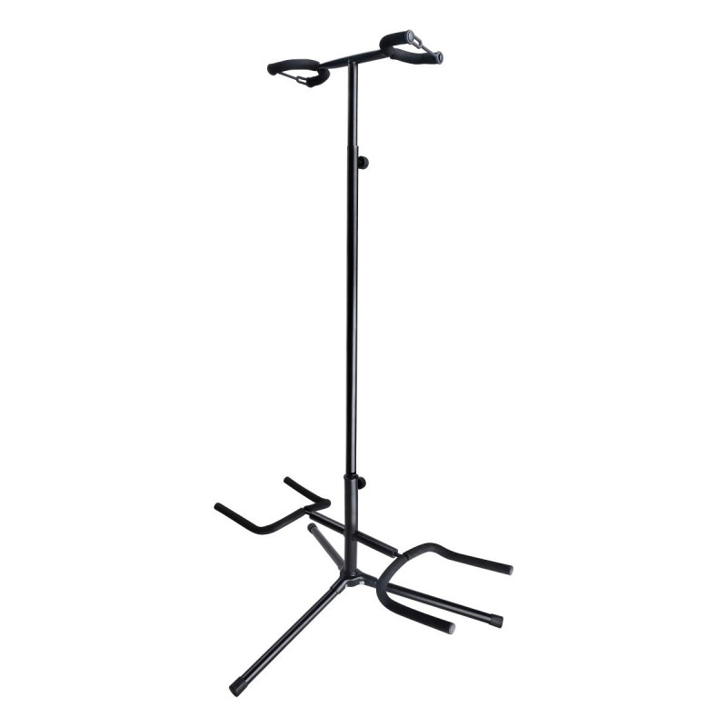 sgs-210 es un soporte universal para 2 guitarras o bajos, acústicos o eléctricos, con ajuste de altura. Es conveniente para aquellos que necesitan 2 instrumentos todo el tiempo, en estudio o durante exposiciones en vivo. Todas las partes de contacto están en goma suave para evitar arañazos. La correa para el cuello y la base del trípode de seguridad garantizan estabilidad y previenen caídas accidentales