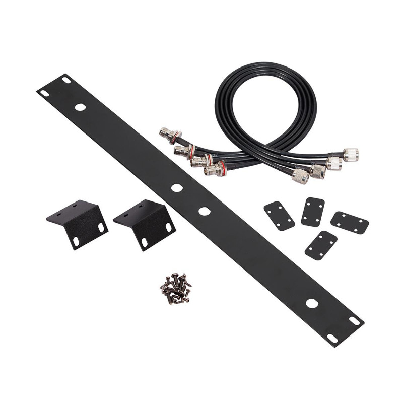El kit le permite montar una unidad receptora de 1/2 en un rack estándar de 19 ". Incluye 1 panel de unidad de rack de 19", 2x soportes laterales, 4x soportes de acoplamiento del receptor, 4x cables de extensión para antena y tornillos para sujetar los dos receptores cada uno otro y luego a los adaptadores de rack