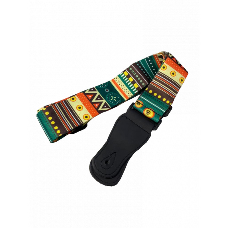 Correa para guitarra eléctrica con posibilidad de ser extendida para la comodidad del portador, esta posee un acabado de estampado de multiples colores y formas muy agradable a ala vista y al tanto debido a que esta compuesta de tela oxford.