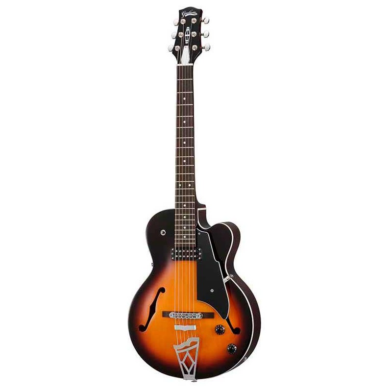 GUITARRA DE CUERPO HUECO La nueva guitarra acústica/eléctrica VOX Giulietta 3D incorpora el exclusivo sistema de modelado AEROS-D que ofrece nuevas dimensiones de sonido al diseño clásico archtop. El sistema VOX AEROS-D proporciona acceso instantáneo a una amplia gama de sonidos (18) acústicos, eléctricos y de sintetizador. 6 bancos de instrumentos con 3 variaciones cada uno, más 2 bancos de usuario para almacenar hasta 6 presets. 2 bancos para sonidos de eléctrica single coil y humbucker. 2 bancos para 6 sonidos de acústica, además de banjo, sitar, 12 cuerdas… Puente tipo Tune-O-Matic con piezo para sonidos acústicos. Pastilla humbucker VOX XLM para sonidos eléctricos. Efectos Drive y Reverb. Longitud de escala de 24,75’’. Cuerpo de 13,5’’ de ancho, con tapa archtop de arce, y aros y trasera de arce. 22 trastes. Mástil de caoba. Incluye funda.