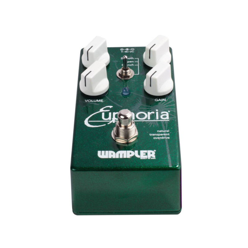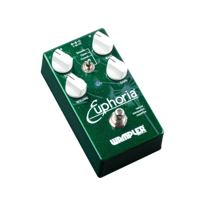 PEDAL DE OVERDRIVE 'Si hay que definir este pedal en una palabra esta es ''transparencia''. Con un control Pre-Gain Bass que engordará tu sonido reaccionando a tu ataque y te dará la calidez y el sustain de un ampli de gama alta. Tiene 3 etapas independientes en cascada que te ofrecerán 3 overdrives diferentes: Desde uno muy suave a otro totalmente abierto que simplemente amplia tu tono natural, como un fuzz pasando por uno muy agresivo y con crunch. El Euphoria será tuúltima elección en pedales de overdrive. True Bypass con switch silencioso. 4 controles (Volumen, Gain, Bass y Treble). 3 etapas independientes en cascada. A batería, 9v o 18v. Power jack. Hecho un U.S.A.'