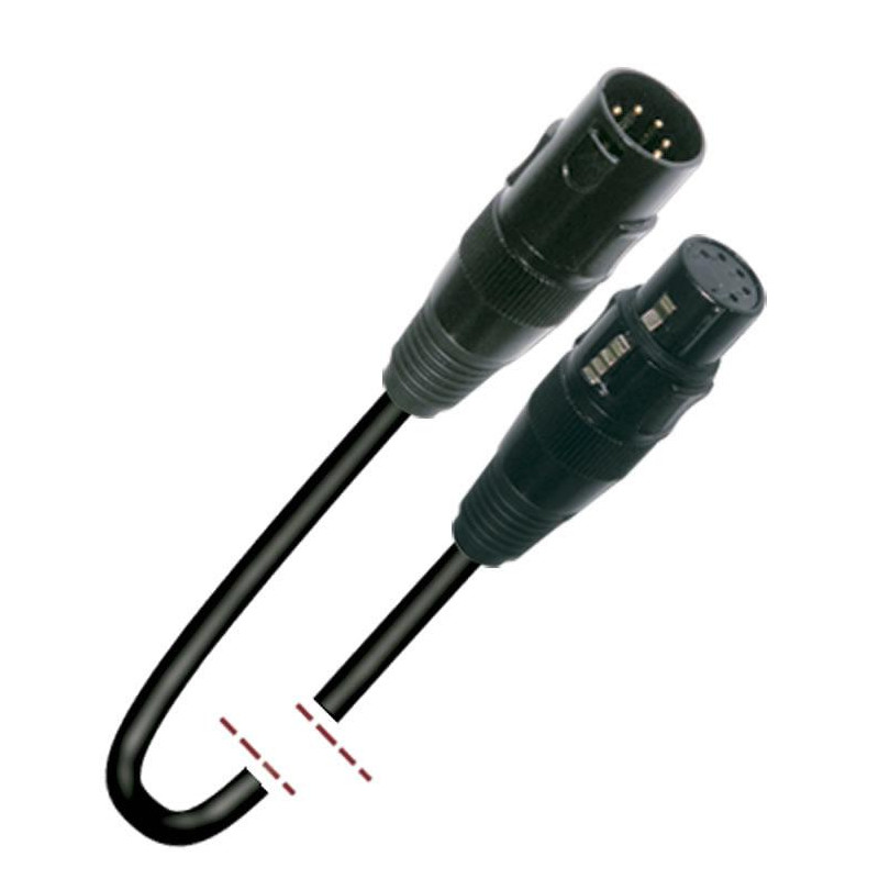 Cable con conectores XLR 5 pin macho - XLR 5 pin hembra, especial para DMX. 4 conductores de 19 x 0,15 mm + malla. Longitud: 10 m.