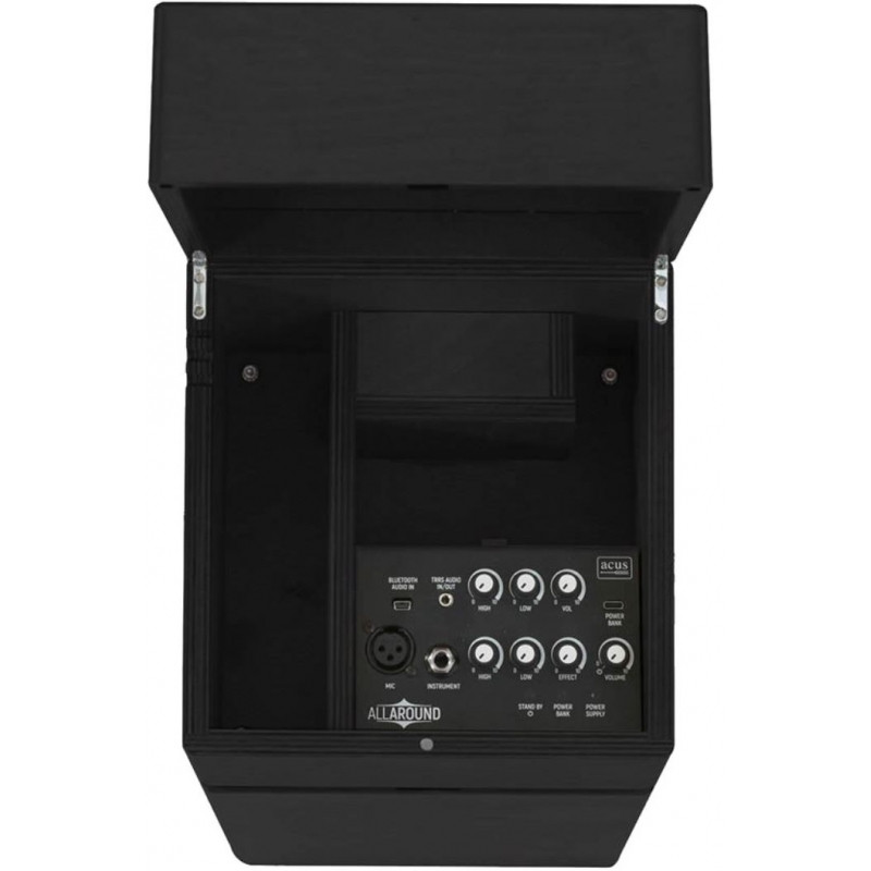 AMPLIFICATEUR DE GUITARE ACOUSTIQUE Les nouveaux amplificateurs ALLAROUND d'ACUS représentent une nouvelle amplification pour les guitares classiques et acoustiques, ainsi que pour les instruments à cordes frottées et le chant, qui permettent un son surround et une écoute parfaite depuis n'importe quel point. Cela permet au public et au musicien lui-même d'avoir la même référence. Parfait pour une utilisation en intérieur comme en extérieur, grâce à ses 50W de puissance.