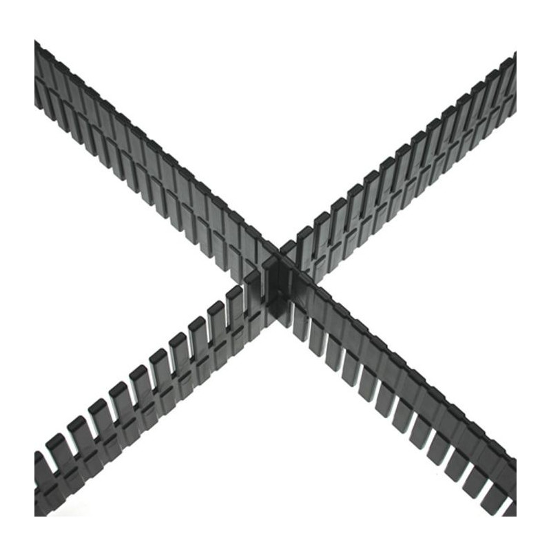 Universal Partitioning for Rack Drawers 2 U or higher, or any drawer (office, etc.) with a minimum internal height of 70 mm. With click joiners at each end. Can be easilycut to the required length.
