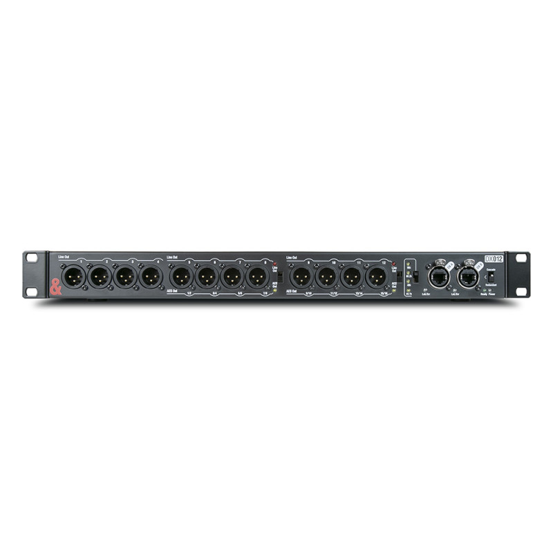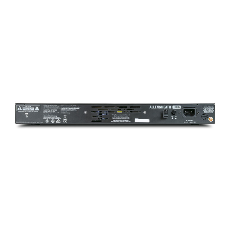 Le DX012 est un extenseur de sortie au format rack 19", avec une résolution de 96 kHz, pour les systèmes de mixage numérique Allen & Heath. Chaque unité DX012 fournit 12 sorties via XLR et est configurable comme : 12 sorties ligne analogiques, 8 sorties ligne analogiques + 4 AES. sorties stéréo, ou 4 sorties ligne analogiques + 8 sorties stéréo AES. Le DX012 se connecte, via un seul câble Cat5e, à un dLive Surface, un dLive MixRack, un mixeur SQ ou envoie le flux de signal à un expandeur DX via un port EtherCon sécurisé. Un deuxième port EtherCon verrouillable est fourni pour permettre une connexion redondante à du matériel compatible, ou pour se connecter en série pour envoyer le flux de signal à un extenseur DX, pour des E/S à distance supplémentaires.
