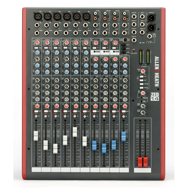 ZED-14 est une table de mixage stéréo petit format, équipée d'USB, destinée au son live, à l'enregistrement et à la production. Ses fonctionnalités sont incroyablement avancées pour son niveau ; Il dispose de 13 sources indépendantes dans le mixage, de 10 sorties indépendantes, de 4 départs auxiliaires, d'un départ et d'un retour USB pour l'enregistrement, la lecture et les effets sur ordinateurs PC ou Mac, d'une double entrée stéréo exclusive et de quelques possibilités de monitoring avancées. Il intègre le nouveau préamplificateur de microphone DuoPre, qui offre un son totalement transparent et un faible bruit. Comprend le logiciel SONAR LE de Cakewalk, offrant à l'utilisateur un système d'enregistrement numérique prêt à commencer à travailler immédiatement.