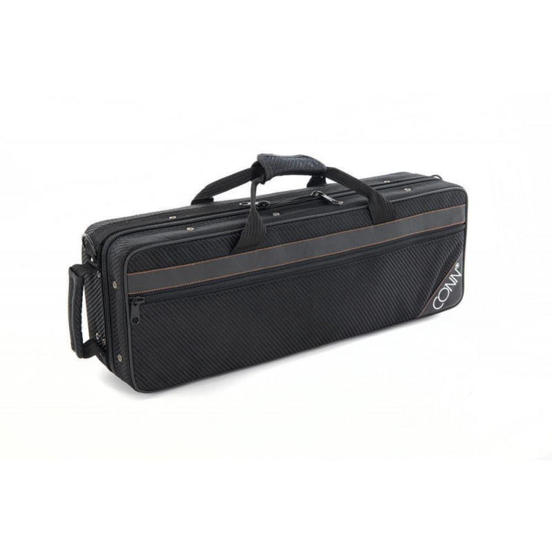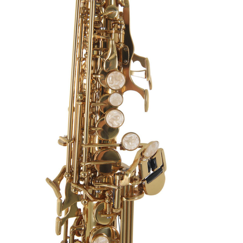 Modèle droit. Tiges interchangeables (droites et courbées). Corps et clés en laiton. Laqué. Touche Fa# aigu. Mécanisme Do#/Sib. Pads PISONI. Étui léger type sac à dos.