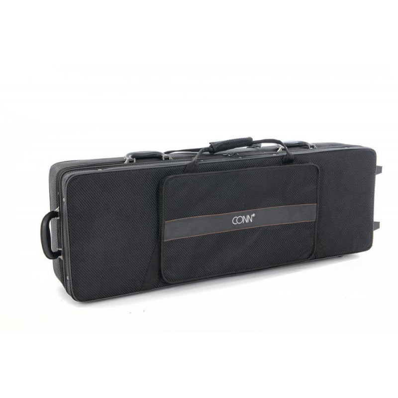 Corps et clés en laiton. Laqué. Branche d'embouchure en S. Clé de Fa# aigu. Mécanisme Do#/Sib. Clé de La grave. Clé de Do double embase. Pavillon et passant vissés. Tampons PISONI. Boîtier rectangulaire à roulettes.