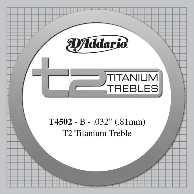 CORDON LIBRE POUR GUITARE CLASSIQUE Corde de guitare espagnole série D'Addario T4501 Titanium. Calibre .033 ''. Fabriqué à partir d'un matériau monofilament dense qui a une teinte violette attrayante et translucide. Les cordes T2 ont une sensation polie, semblable à une corde en nylon, mais avec un ton légèrement plus lumineux et une plus grande projection. En conséquence, vous pouvez remplacer les cordes T2 en titane aigus par des cordes en nylon avec très peu d'acclimatation au changement de vitesse.