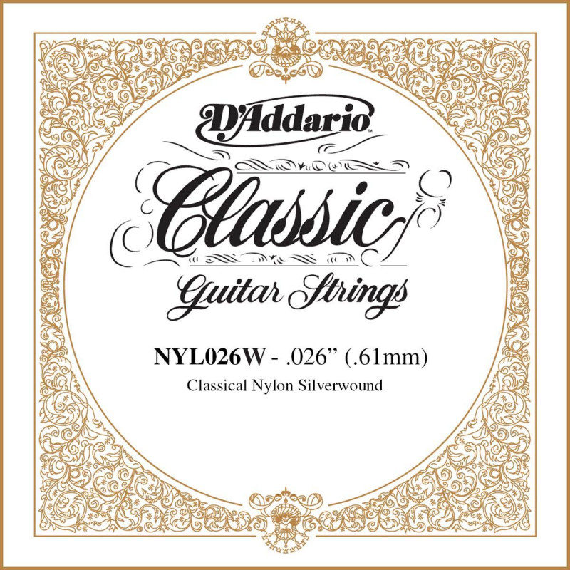 Corde lâche pour guitare classique Guitare espagnole en nylon à cordes simples, série classique 026. Les cordes en cuivre plaqué argent sont conçues pour la guitare classique et font partie de nos ensembles Pro-Arte et D'Addario Classic. Le cuivre argenté est connu pour son ton chaud et équilibré classique.