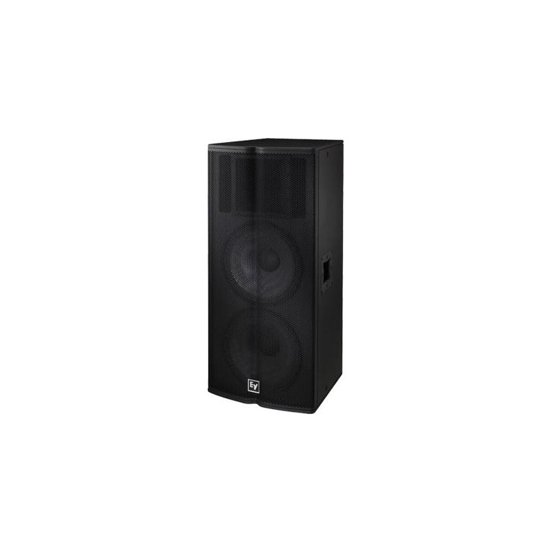 ENCEINTE PA (PASSIF) Système compact passif passif à 2 voies. Boîtier de forme trapézoïdale, construit avec une combinaison de panneaux de bois MDF et de contreplaqué, recouvert d'EVCoat, fini en noir. Comprend 2 poignées de transport et 6 points d'ancrage filetés ». LF: 2 haut-parleurs à cône 15 '(SMX2151). HF: 1x moteur à membrane en titane de 2 '(ND2-8). Angle de couverture: H 60 ° x V 40 ° (rotatif). -Réponse de 10 dB: 50 Hz - 18 kHz. FR: 1000W / 4 / 103dB / 139dB. Connecteurs: 2x NL4. Dimensions (HxLxP): 1154 x 508 x 471 mm. Poids: 42,8 kg.
