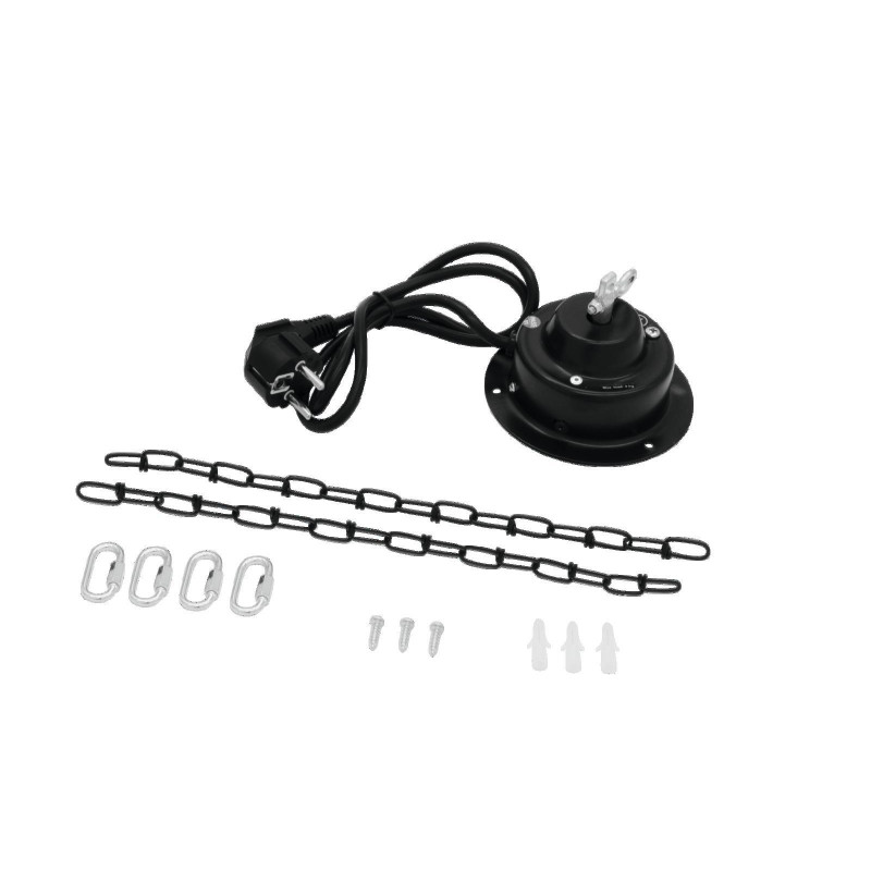 Ensemble composé d'un moteur, d'une boule à facettes et d'une chaîne