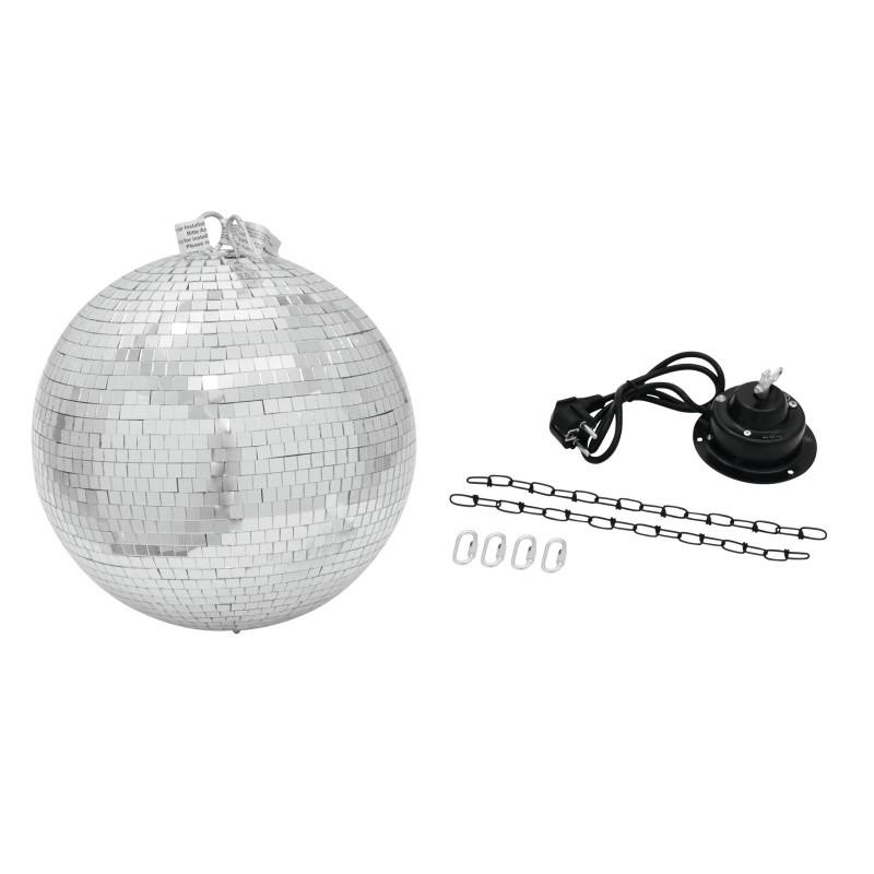 Ensemble composé d'un moteur, d'une boule à facettes et d'une chaîne