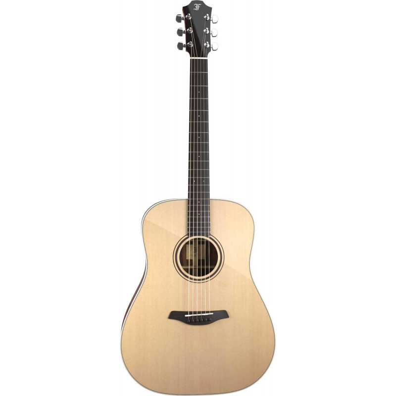 GUITARE ACOUSTIQUE 6 CORDES 'Corps Dreadnought Cou-à-corps joignant la 14ème frette Table en épicéa de Sitka massif - AA Dos et éclisses massifs (SR) - palissandre indien de qualité - Filetage AA (SR) Filet en ivoire artificiel (SM) Tortue artificielle Purfling Five ligne de contraste noire et blanche à couches Rosace Double anneau avec incrustation en noyer Chevalet Ébène Chevilles de chevalet Sillet en ébène TUSQ entièrement compensé Espacement des cordes au pont 55 mm Finition du dessus Finition Full-Pore High-Gloss Finition du dos et des éclisses Finition Full-Pore High-Gloss Pickguard Manche transparent anti-rayures Largeur au sillet 45 mm Largeur au sillet disponible 43 mm et 48 mm Renforcement du manche Système CNR avec réglage bidirectionnel Profil du manche Furch soft V Diapason 650 mm Matériau de la touche Ébène Rayon de la touche 400 mm Incrustation avant de la touche Points de position nacrés blancs Touche incrustation latérale Points de position nacrés blancs Finition des frettes Frettes polies pour un meilleur confort de jeu Revêtement de la tête Ébène Matériau du manche Acajou africain Mécaniques Furch Machine Chrome - gear ra duo 1:18 Sillet TUSQ Espacement des cordes au sillet (45 mm) 38 mm Espacement des cordes au sillet (43 mm) 36.6 mm Espacement des cordes au sillet (48 mm) 40.1 mm Cordes Elixir Ph-Br Nanoweb 12-53 Finition manche Full-Pore Smooth-Slide Satin Finish Finition de la poupée Full-Pore High-Gloss Finish Étui rigide Hiscox inclus '