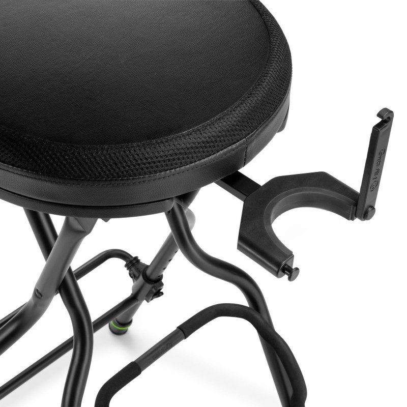 La compacité est le mot d'ordre de ce produit, car qui n'a jamais oublié son support de guitare dans la précipitation et a dû composer avec le tabouret inconfortable du lieu du concert, la guitare glissant régulièrement à cause de la hauteur du tabouret? Le tabouret de bar pour guitariste Gravity® FG SEAT 1 est là pour éviter ces désagréments Un tabouret intelligemment conçu avec support intégré et repose-pieds réglable pour reproduire une atmosphère de bar sur scène comme à la maison.