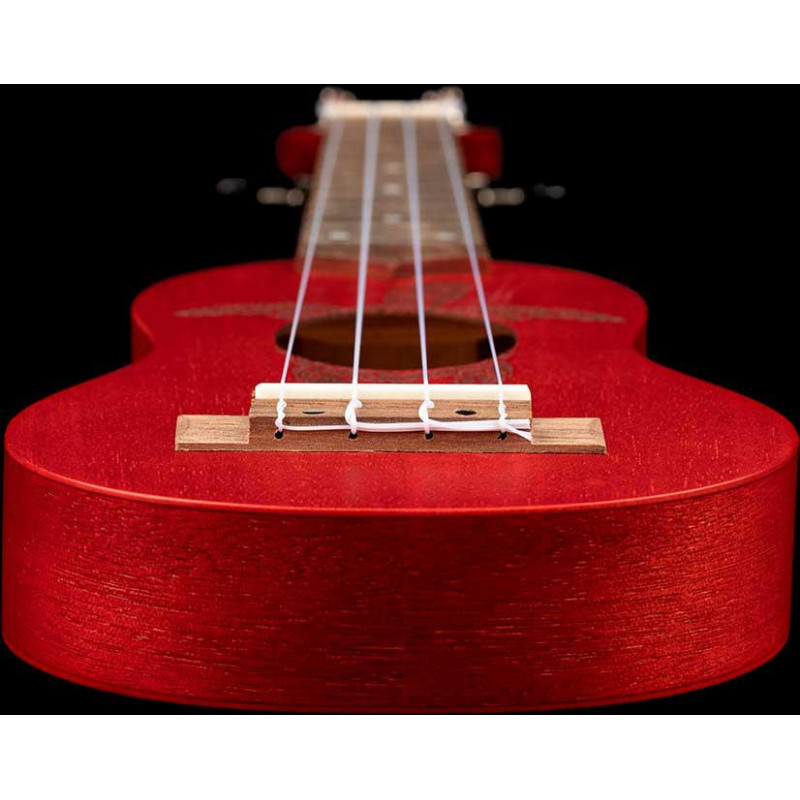 UKELELE SOPRANINO Keiki K1-MM Ukulélé sopranino. (plus petit que le soprano, échelle 248 mm). Finition satinée en rouge. Corps et manche en okoumé, touche et chevalet en noyer. Couvercle en okoumé gravé au laser avec motif « tortue ». Mécaniques chromées et noires. Jeu de cordes Ortega UWNY-4-SO pour Soprano standard.