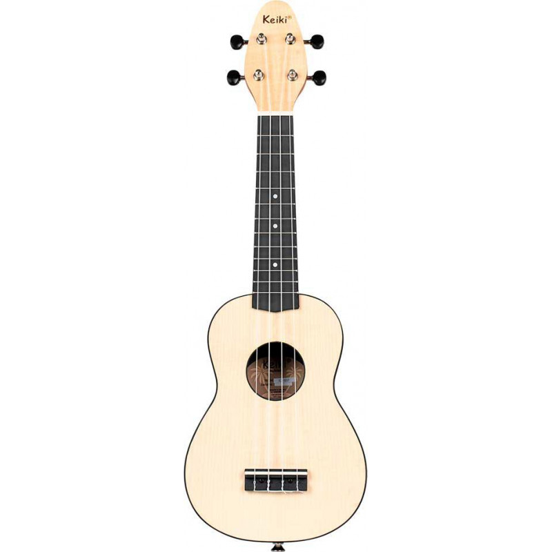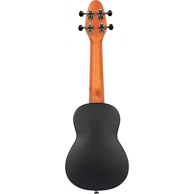 Pack Ukulélé soprano UKELELE SOPRANO + accordeur + sangle + médiators + sac de transport. Ukulélé avec touche chevalet et dos arrondi en fibre. Dessus en bois d'érable.