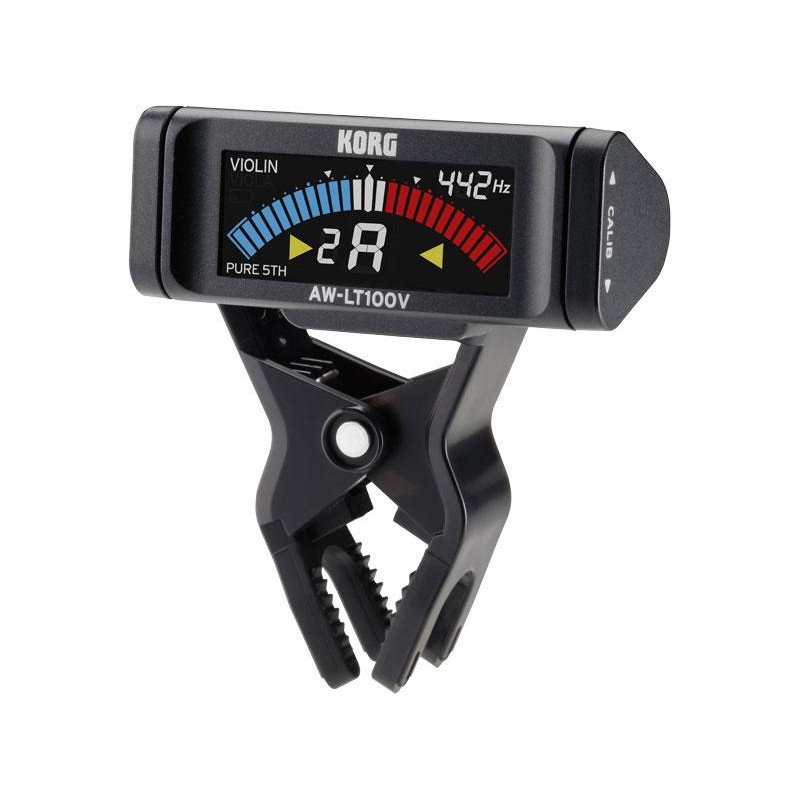 TUNER CHROMATIC CLAMP TUNER Tweezer avec clip spécial et mode dédié pour violon et alto à accorder aux quintes parfaites. Batterie longue durée avec 100 heures de fonctionnement continu. Écran LCD couleur haute luminosité. Réglage ultra-précis de +/- 0,1 centième. Trois modes de mesure standard, stroboscopique et semi-stroboscopique. Mécanisme de clip avec une grande force de traction et flexibilité. Poids 36 grammes (batterie incluse).