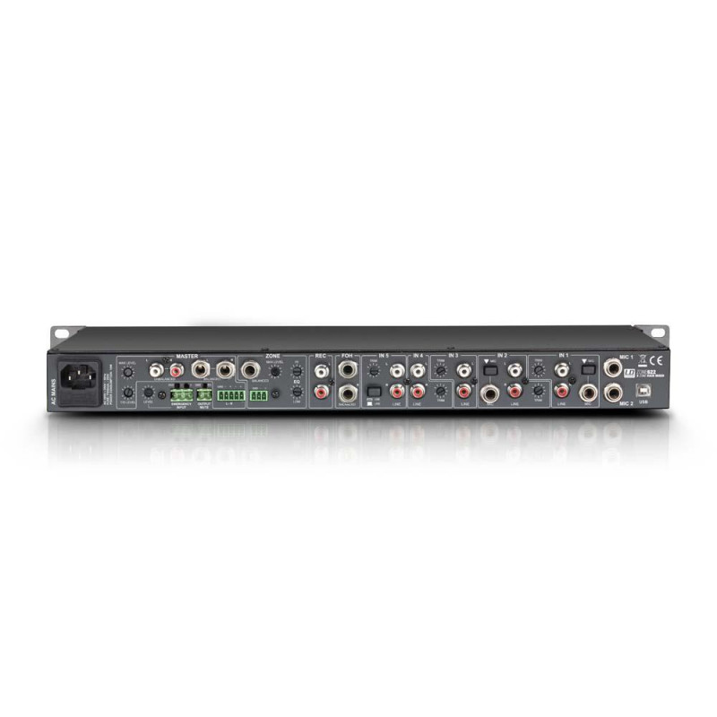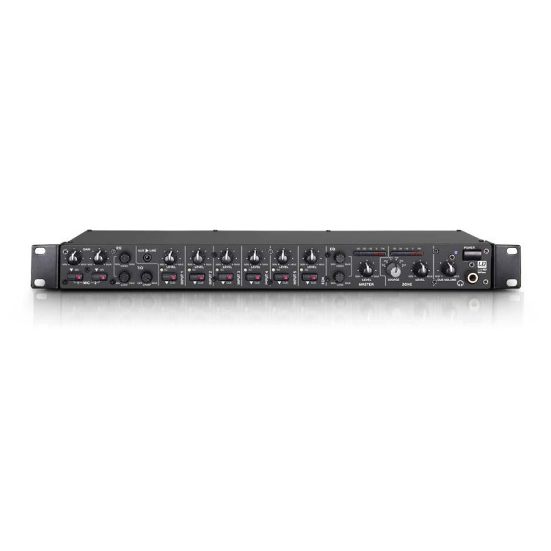 Ses deux voies micro, sur connecteurs jack TRS (symétriques), comportent un potentiomètre de gain, de volume et d'atténuation Talkover, une alimentation fantôme 12 Volts et un égaliseur 2 bandes. Les voies ligne 1 et 2 sont également compatibles avec des micros câblés en asymétrique, et la voie 6 est spécialement conçue pour les signaux symétriques provenant d'une console externe par exemple. Les voies d'entrée stéréo du mixeur ZONE 622 sont équipées chacune d'une touche Cue et d'un potentiomètre de volume avec LED de présence de signal. En outre, les canaux 1-5 disposent d'un trimmer de gain. Le mixeur possède aussi une entrée sur mini-jack stéréo 3,5 mm et un port USB, gérant un flux de signaux audio en entrée et en sortie stéréo (Recording Out). Le ZONE 622 peut donc s'utiliser en tant qu'interface audio externe.