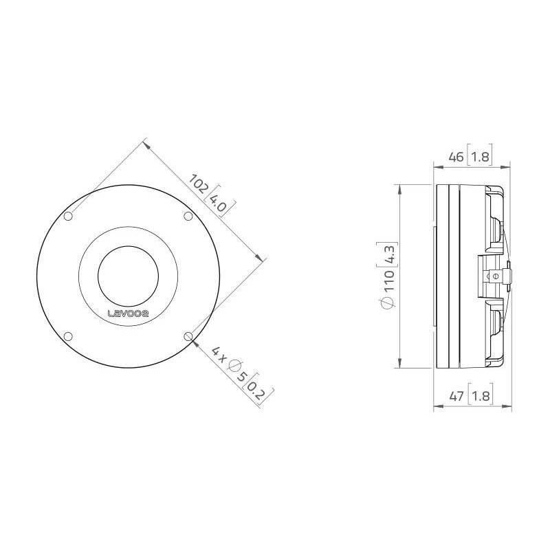 | Tweeter à bobine mobile (2,5 ") environ 6,35 cm | |