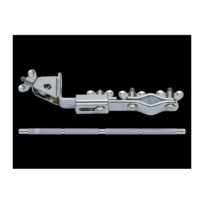 RACCORD À PERCUSSION Matériel pour coupler 1 élément de percussion (cloche de vache, tambourin ...). S'attache à n'importe quel pied. Il est réglable en longueur et tout instrument de percussion fixe peut y être attaché.