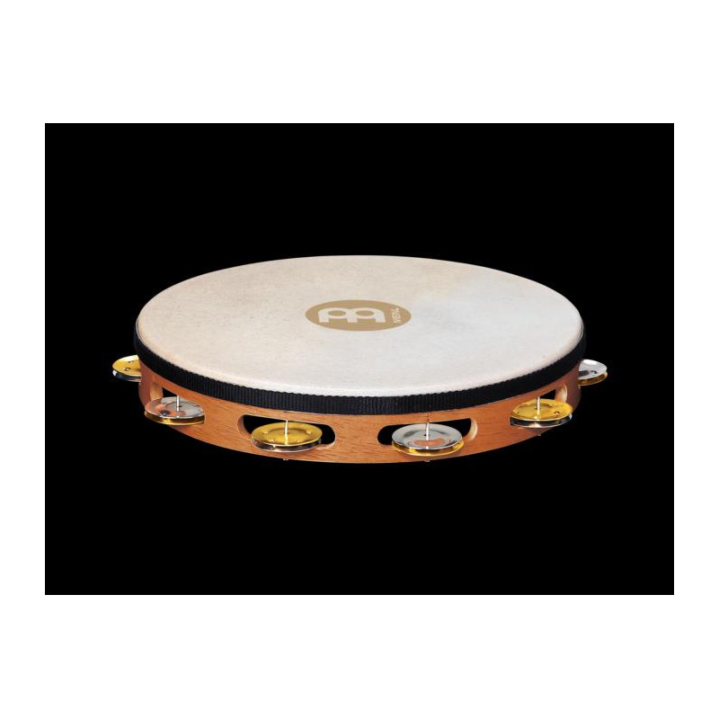ÉCHELLE AVEC ÉCUSSON 'Tambourin en bois 10' 'avec écusson natrual précontraint et 1 rangée de hochets en acier et laiton. Tambourin en bois de 25,4 cm de diamètre. Design vintage, fini en brun noyer.
