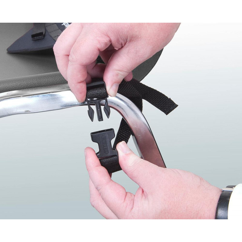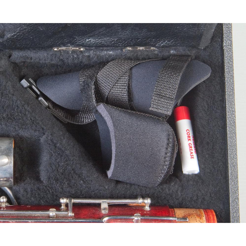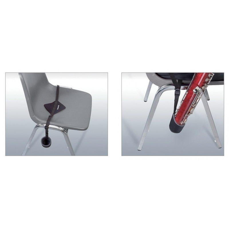 Comme alternative au bracelet traditionnel. Soulage le poids sur le cou et les épaules. Avec boucles en plastique à dégagement rapide pour la fixation au pied de la chaise. Sangle en nylon réglable en longueur avec coussinet antidérapant. Support de basson renforcé de nylon néoprène.