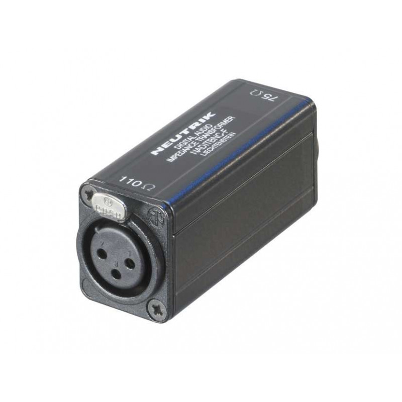 Connecteur châssis XLR femelle, entrée 110 ? - Sortie 75° BNC femelle. Interface pour lignes symétriques et coaxiales.
