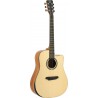GUITARE ACOUSTIQUE 6 CORDES AVEC CUTAWAY Guitare acoustique avec dreadnought type pan coupé. Système de confort pour plus de confort. Table en épicéa massif. Dos et côtés Sapelly. Chevalet et touche en bois de rose composé Tête de machine fermée. Cordes D´Addario. Finition mate naturelle.