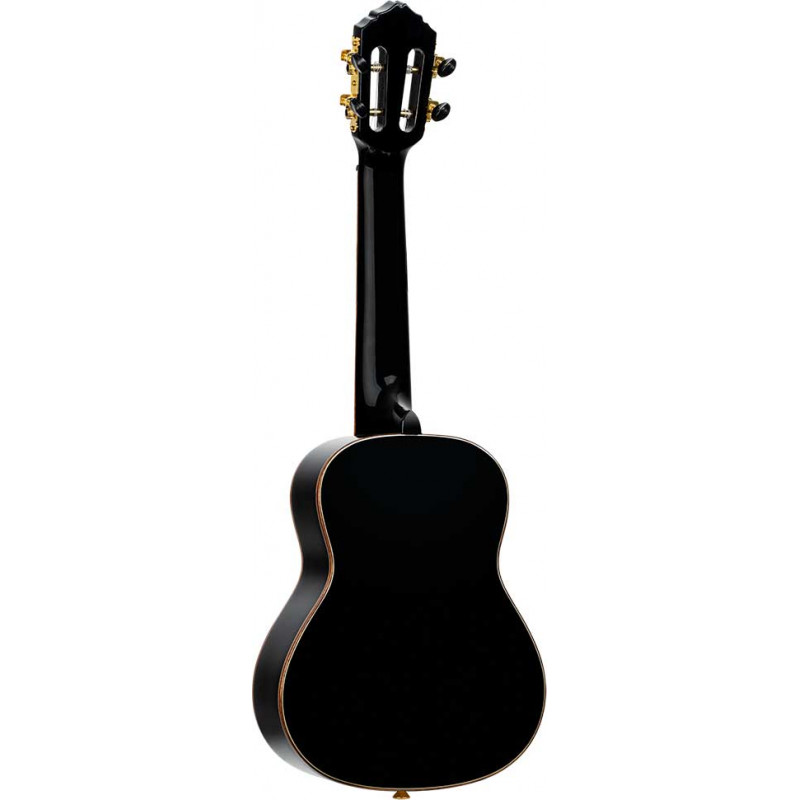 CONCERT UKELELE Les ukulélés de la série Onyx sont de magnifiques instruments dotés d'un corps et d'un manche en acajou, d'une finition noir brillant, d'un placage, d'une touche et d'un chevalet en noyer et d'une tête fendue. Ils sont disponibles en taille Soprano, Concer ou Ténor.