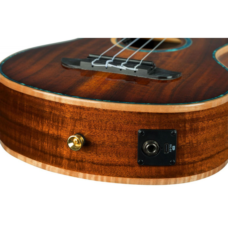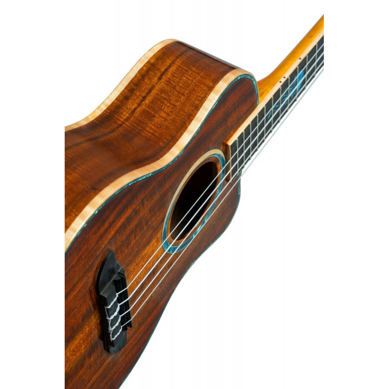 UKELELE « Pour célébrer le 30e anniversaire d'Ortega Guitars, nous sommes fiers de présenter quatre ukulélés ténor, méticuleusement fabriqués à la main à partir de bois d'acacia massif AAA. Ces ukulélés en édition limitée présentent de jolies incrustations de vie marine sur la frette 5/12, représentant des dauphins, des baleines bleues, des méduses et des tortues de mer, rendant hommage aux merveilles de la nature. Chaque ukulélé est livré avec un étui professionnel du 30e anniversaire. Célébrez avec nous et découvrez la beauté et la précision de ces instruments à frappe limités. Taille : ténor. Largeur de l'écrou : 35 mm (1,38"). Échelle : 430 mm (16,93"). Taille ténor Incrustations Sea Life Édition limitée Table : bois d'acacia massif AAA, finition brillante Dos et éclisses : bois d'acacia massif AAA, finition brillante Manche : acajou, finition brillante Touche et chevalet : ébène Électronique : système de préampli de rosace rechargeable MagusFly/U Tête de manche : inversée Placage de poupée 4 en ligne : Acacia, finition brillante Reliure : Reliure supérieure et inférieure en érable flammé Bord supérieur en perle bleue Trou de son en érable et perle bleue Incrustations de méduses en perle bleue et en perle blanche Échelle : 430 mm (16,93'') Largeur au sillet : 35 mm (1,38'') Étui professionnel 30e anniversaire inclus'