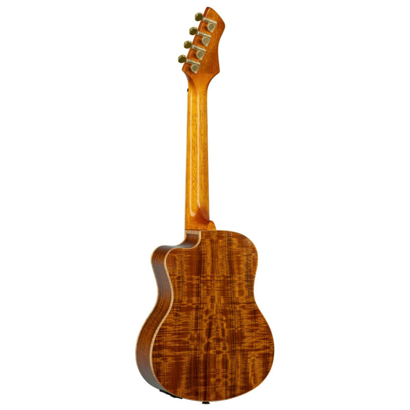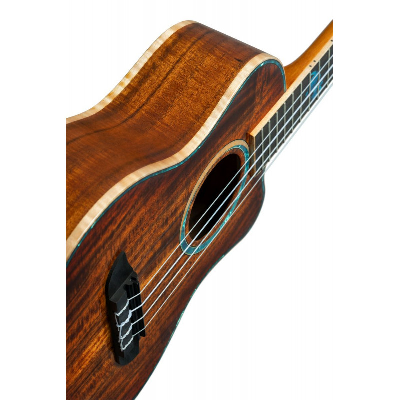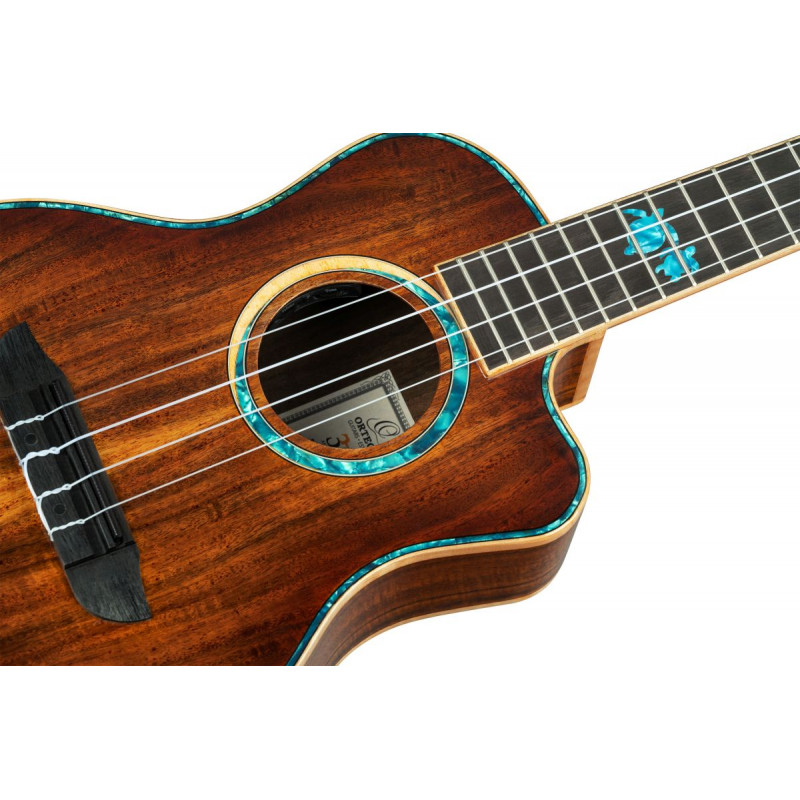 UKELELE « Pour célébrer le 30e anniversaire d'Ortega Guitars, nous sommes fiers de présenter quatre ukulélés ténor, méticuleusement fabriqués à la main à partir de bois d'acacia massif AAA. Ces ukulélés en édition limitée présentent de jolies incrustations de vie marine sur la frette 5/12, représentant des dauphins, des baleines bleues, des méduses et des tortues de mer, rendant hommage aux merveilles de la nature. Chaque ukulélé est livré avec un étui professionnel du 30e anniversaire. Célébrez avec nous et découvrez la beauté et la précision de ces instruments à frappe limités. Taille : ténor. Largeur de l'écrou : 35 mm (1,38"). Échelle : 430 mm (16,93"). Incrustations Sea Life de taille ténor Édition limitée Table : bois d'acacia massif AAA, finition brillante Dos et éclisses : bois d'acacia massif AAA, finition brillante Manche : acajou, finition brillante Touche et chevalet : ébène Électronique : système de préampli de rosace rechargeable Tête MagusFly/U : inversée Tête 4 en ligne : Acacia, finition brillante Reliure : Dessus et fond en érable flammé Bord supérieur en perle bleue Perle bleue/rosace en érable Perle bleue, incrustations de tortue de mer perle bleue/perle blanche Échelle : 430 mm (16,93'') Largeur au sillet : 35 mm (1,38'') 30e anniversaire par étui inclus'