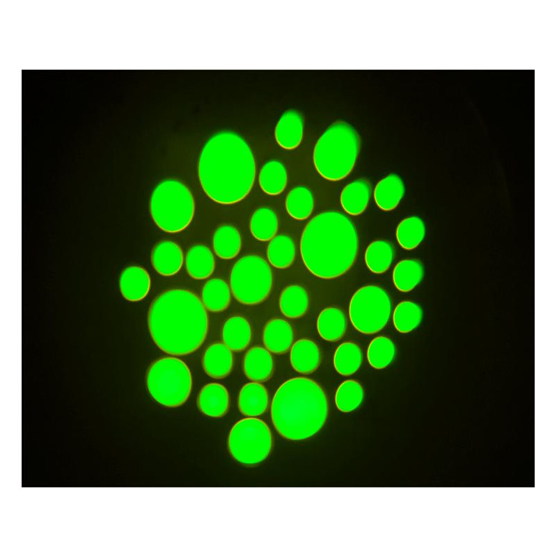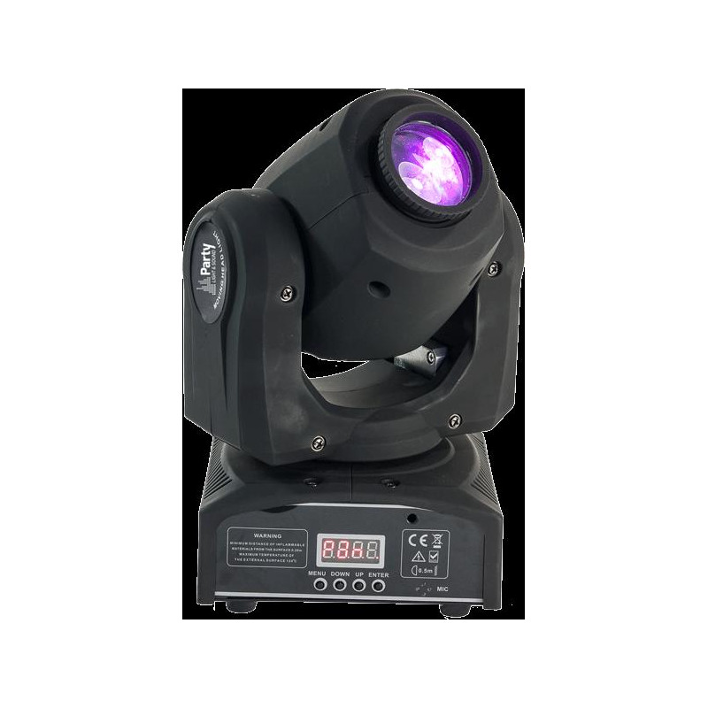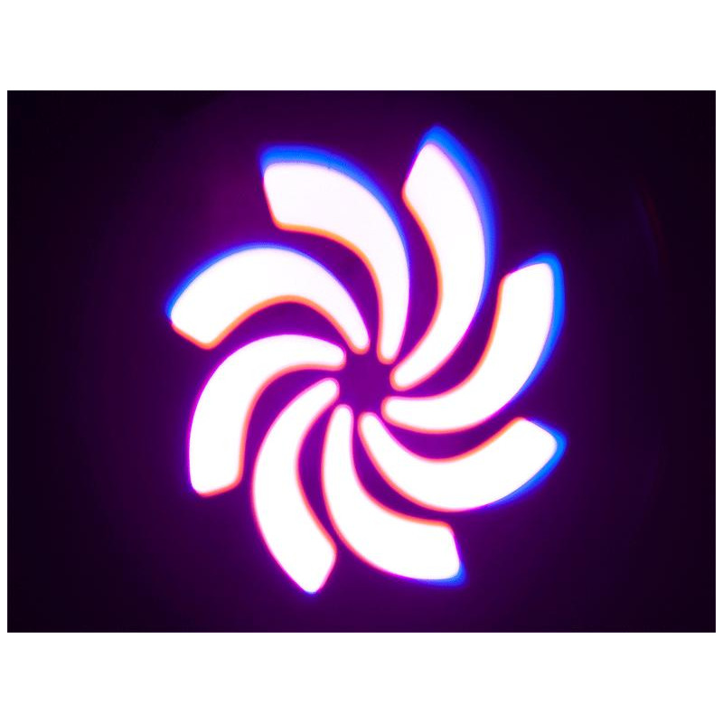 Lyre équipée d'1 LED blanche, de Gobos et d'un disque coloré.