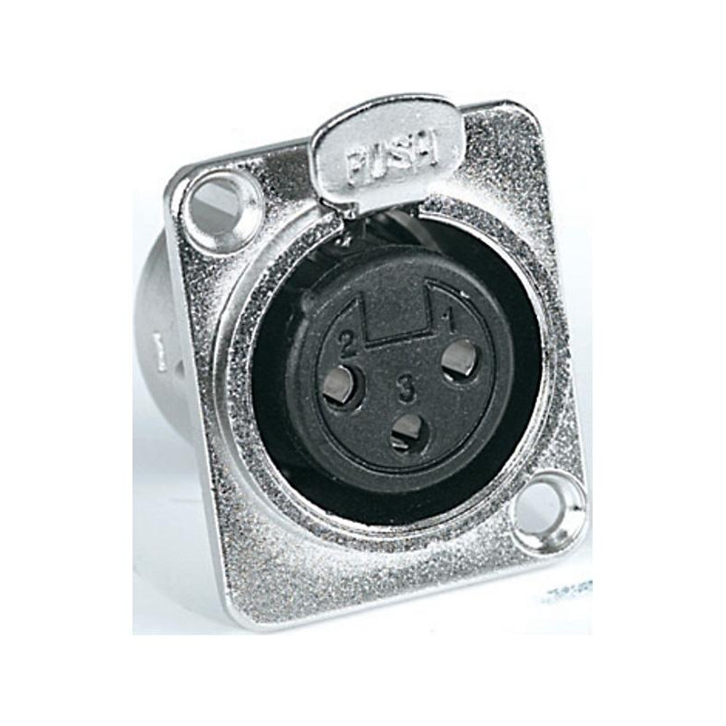CONNECTEUR XLR Connecteur femelle XLR pour panneau à souder en aluminium 3 pôles avec clip. Couleur nickelée.