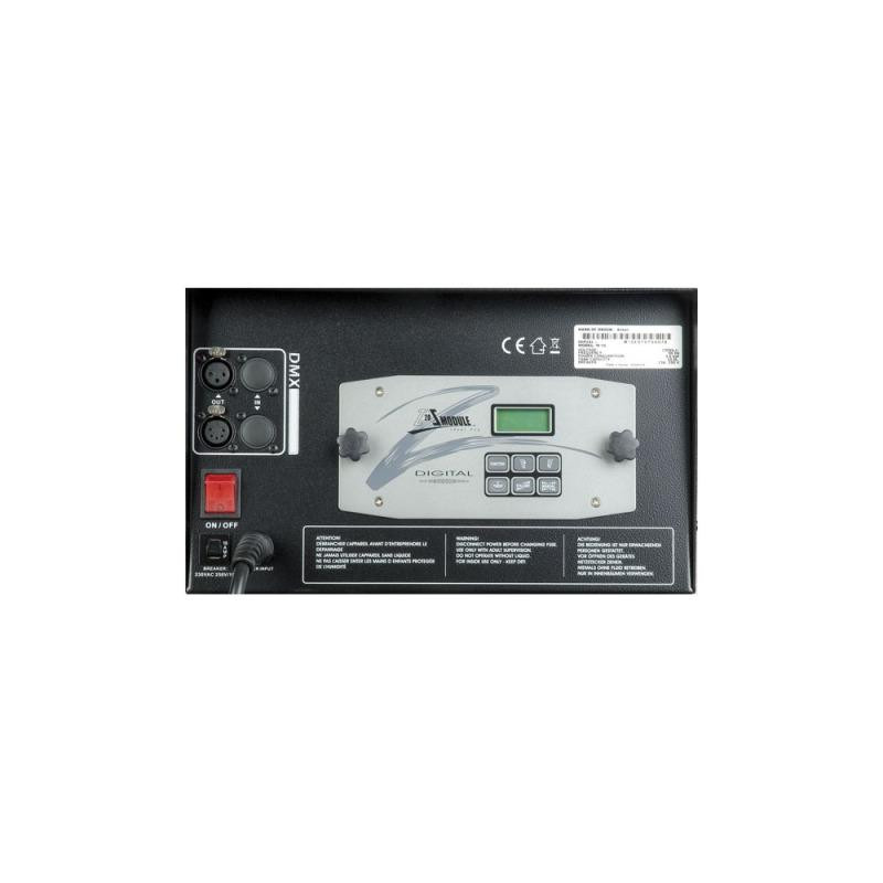 Alimentation : 230 - 240 V C.A. 50 ~ 60 Hz Chauffage : 3 000 W Sortie : 1 133 m³ / min. Premier temps de préchauffage : 13 min. Capacité du réservoir : 10 L Consommation de fluide : 5 min. / L Télécommande incluse : M-20 Télécommande en option : M-30 (60583) DMX-512 : intégré Connecteur DMX : XLR mâle / femelle à 3 et 5 broches Dimensions : 690 x 319 x 192 mm (L x l x h) Poids : 21 kg