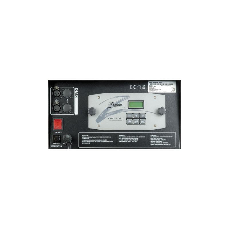 Alimentation : 230 - 240 V C.A. 50 ~ 60 Hz Chauffage : 1 500 W Sortie : 20,000 pieds cube / min. Premier temps de préchauffage : 8 min. Capacité du réservoir : 10 L Consommation de fluide : 9 min. / L Télécommande incluse : M-20 Télécommande en option : M-30 (60583) DMX-512 : intégré Connecteur DMX : XLR mâle / femelle à 3 et 5 broches Dimensions : 659 x 319 x 170 mm (L x l x h) Poids : 15 kg