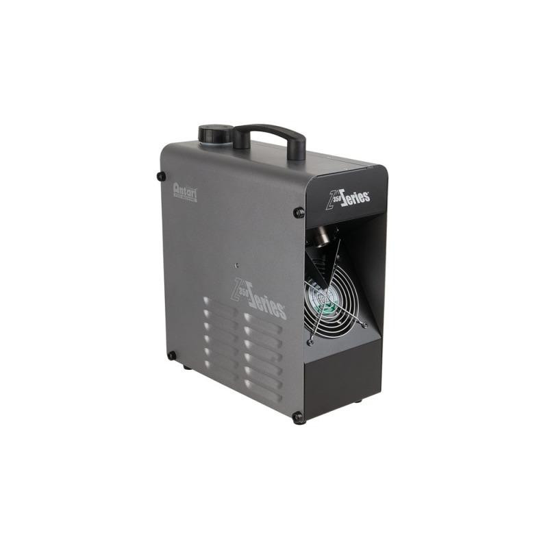 La Z-350 est le tout dernier modèle d'Antari, société à la grande expérience en conception de machines à brouillard. L'intégration d'une pompe à la pointe de la technologie permet à la Z-350 de produire un brouillard sec tout en optimisant la fonction de nettoyage du radiateur. La Z-350 est dotée d'un tube au large diamètre qui réduit considérablement le risque d'obstruction du radiateur. La très faible consommation en fluide permet de faire fonctionner la machine à plein rendement pendant 430 minutes avec seulement un réservoir (1,3 litres). La nouvelle puce DMX intégrée est programmée avec des fonctionnalités intelligentes. Lorsqu'un signal DMX est reçu, la Z-350 se met en marche et commence automatiquement à chauffer. Si aucun signal DMX n'est disponible, la Z-350 lance automatiquement le processus d'auto-nettoyage avant de passer en mode « veille ». Le poids de la machine est de seulement 8,7 kg, ce qui est un atout pour son transport.
