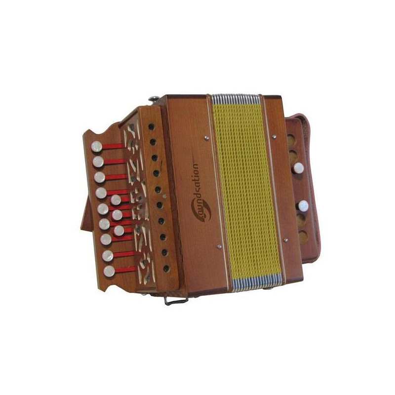 Accordéon diatonique G avec 12 boutons et 2 basses. Finition bois naturel, sac inclus.