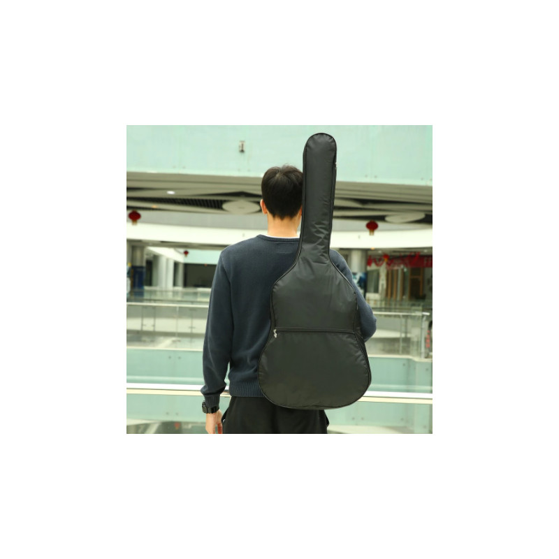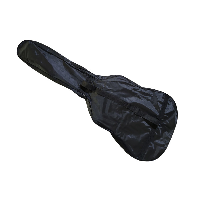 Etui à guitare noir taille 4/4 avec ouverture zippée et sangle.